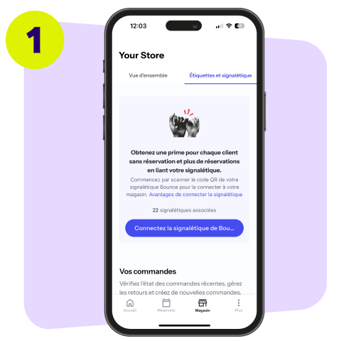 Ouvrez l’application Partenaire et accédez à l’onglet Boutique en bas de l’écran, puis sélectionnez Tags & Signalétique.